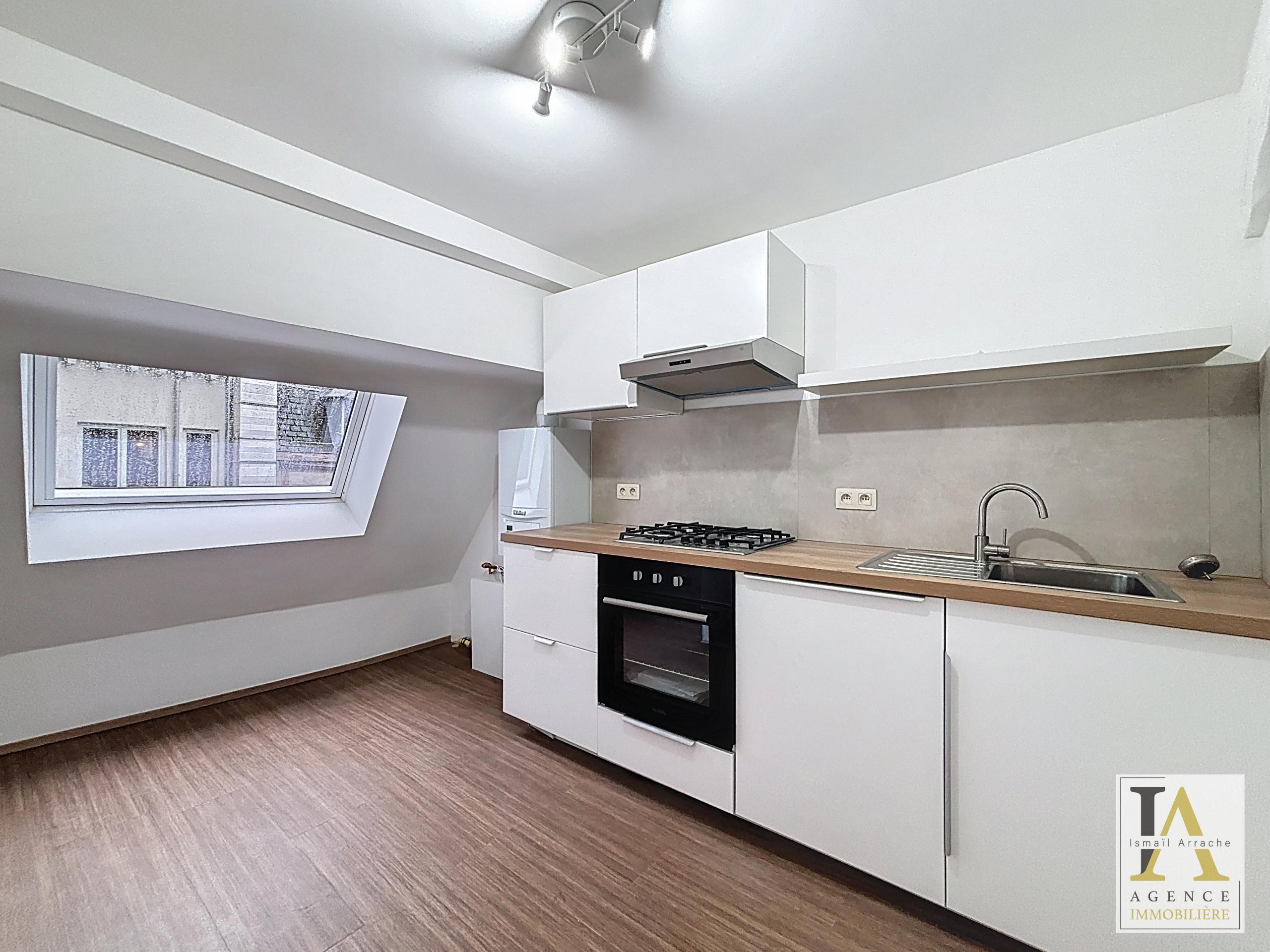 Le studio se compose d’une agréable pièce de vie avec cuisine équipée (frigo, taques, four et hotte), ainsi que d’une salle de douche avec WC. Le bien bénéficie d’un chauffage central au gaz avec chaudière neuve, ainsi que de châssis PVC double vitrage. PAS D’ASCENSEUR